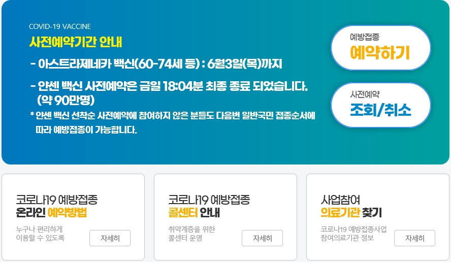 코로나19 예방접종 대응 추진단(이하 추진단)은 이날 0시부터 코로나19 예방접종 사전예약시스템을 통해 얀센 백신에 대한 접종 접종 예약을 진행했다.
