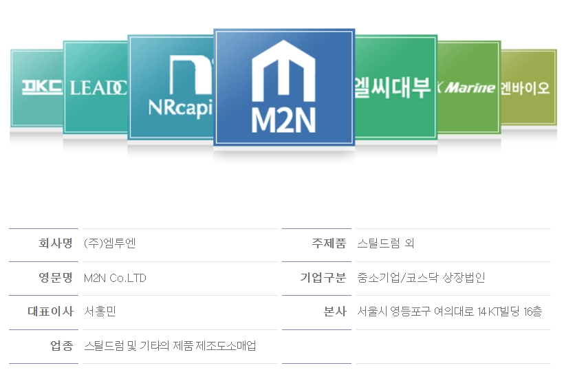 코스닥 상장사인 엠투엔은 독성화학물질을 담는 '스틸드럼' 사업을 주력으로 하는 회사로