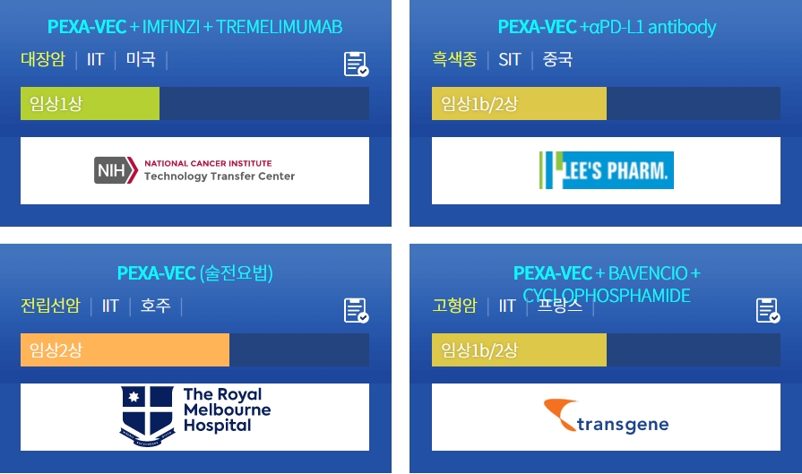 또한, 펙사벡은 정맥 내 투여(IV) 및 종양 내 투여(IT) 로 주입이 가능하며 종양혈관 폐쇄를 통한 암조직 성장을 억제하며