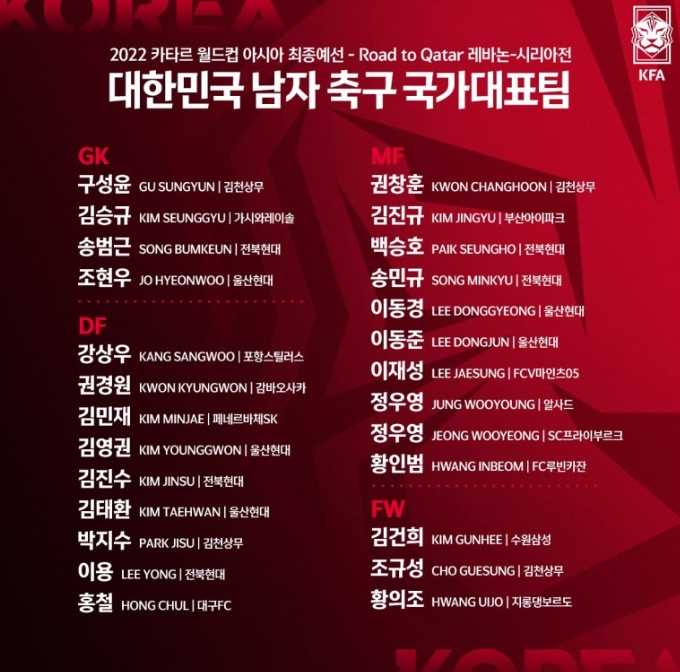대한 축구협회는 2022 카타르 월드컵 아시아 최조예선 경기일정을 공개했다.