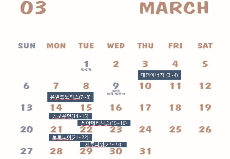 - 3월 공모주#3월 공모일정#유일로보틱스#공구우먼#세아메카닉스#보로노이#지투파워#3월IPO일정