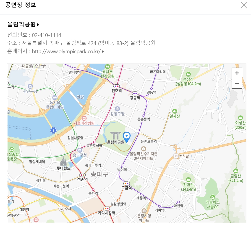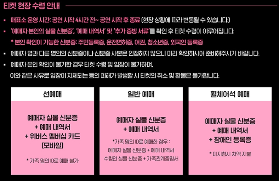 티켓 예매는 인터파크에서 진행되며 일정 및 정보는 아래와 같습니다.