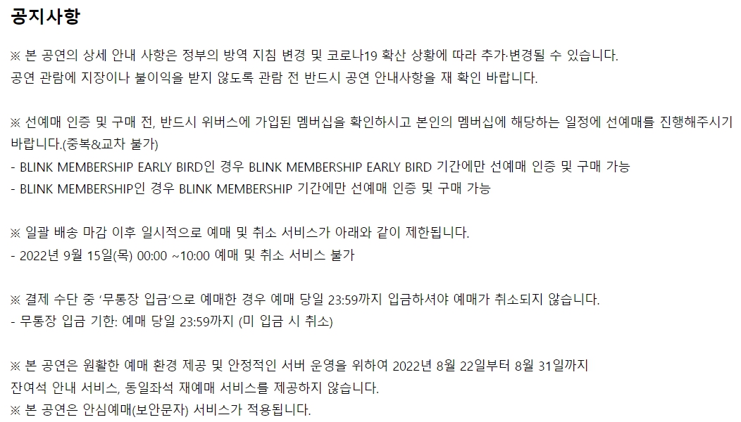 예매처 공지사항 안내