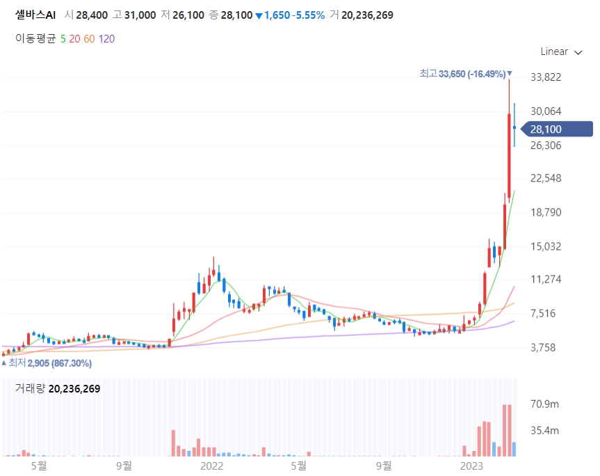 셀바스AI가 대화형 인공지능(AI) 서비스의 인기에 상장 약 14년 만에 최고가를 경신 중이다.