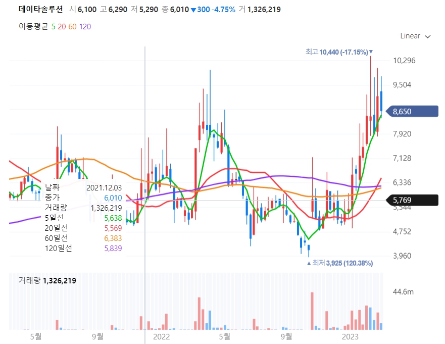 빅데이터가 기반이 되어야 하는 ChatGPT 가 이슈가 됨에 따라 데이타솔루션의 주가도 상승하고 있다.