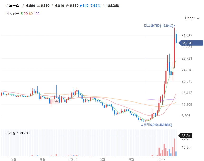 솔트룩스는 인공지능 AI 전문 기업이다. ChatGPT = 인공지능 이라는 논리에 딱 맞는 기업이라 할 수 있다.