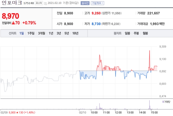 소프트뱅크 계열 투자사가 인포마크의 주요 주주라는 점이 시장에 부각되면서 쿠팡 관련주로 선정되었음.