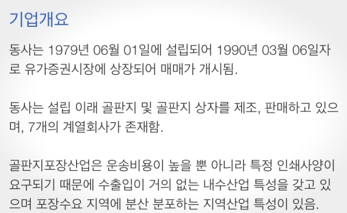 현재 제지 2개사와 판지 5개사를 거느리는 국내 최대 생산 능력을 보유한 포장 전문그룹