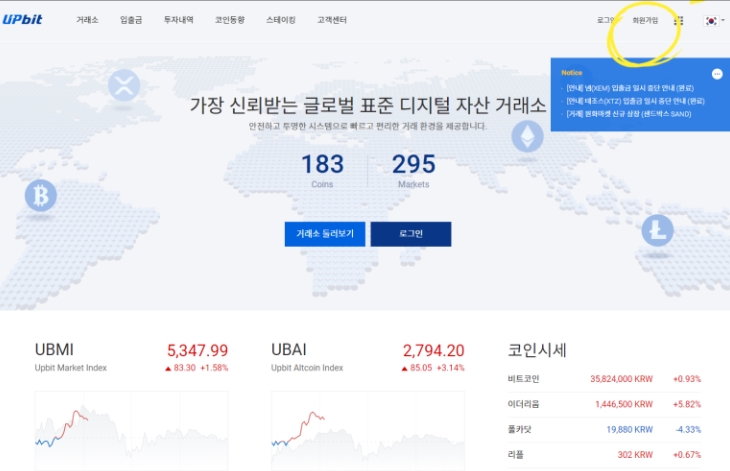 빗썸과 마찬가지로 가입 절차는 매우 까다로우며 농협을 거래 계좌로 사용하는 빗썸과는 달리