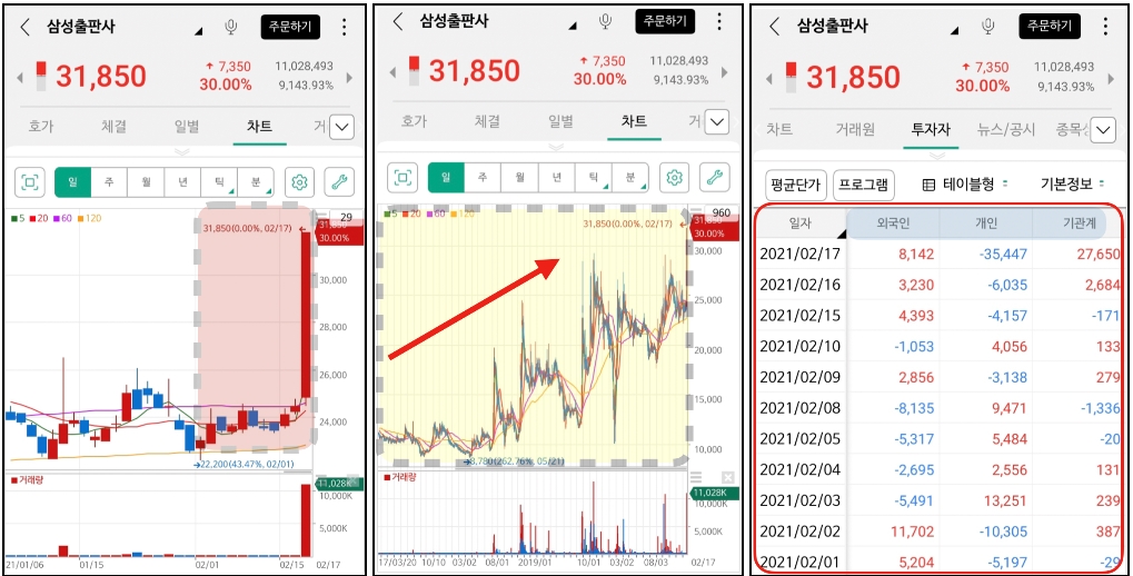 이렇게 상한가와 상승세를 유지하는 이류는 아무래도 향간에 떠도는 삼성출판사의