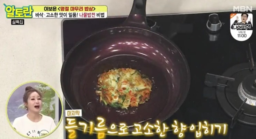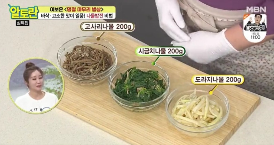 삼색 나물로 만드는 나물밥전을 만드는 것인데 이보은 요리연구가 선생님이