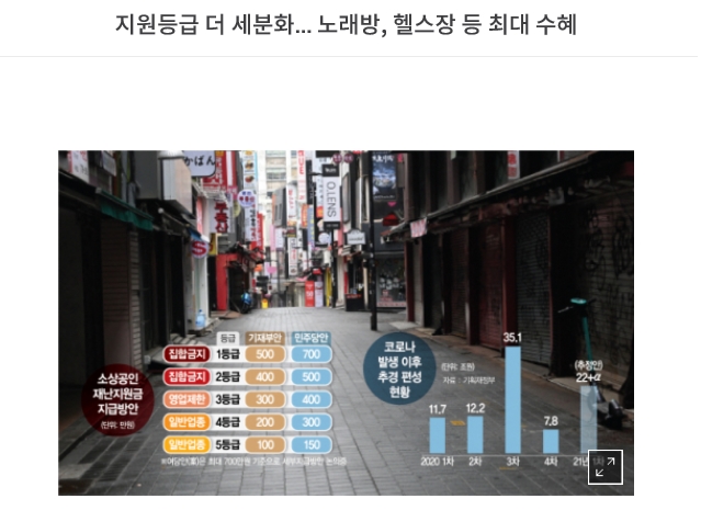 3개로만 나눠 등급별 차등이 적었다. 예를 들어 아예 영업을 하지 못했던 노래방과 정상적 영업이 가능했던