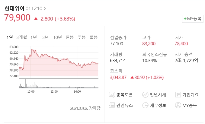 - 현대모비스(1.82%), 우리산업(6.15%), 동아화성(6.2%) 등 다른 수혜주들도 강세를 보였다.