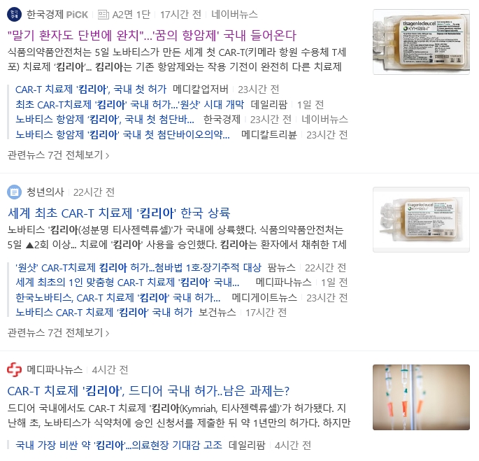 노바티스 킴리아 관려 기사
