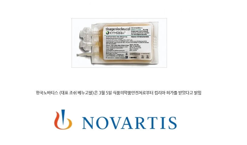 노바티스 '킴리아(성분명 티사젠렉류셀)'가 국내에 상륙했다.