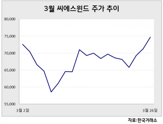 외국인은 이달 들어 씨에스윈드를 358억원 순매수하며 주가 상승을 이끌었다.
