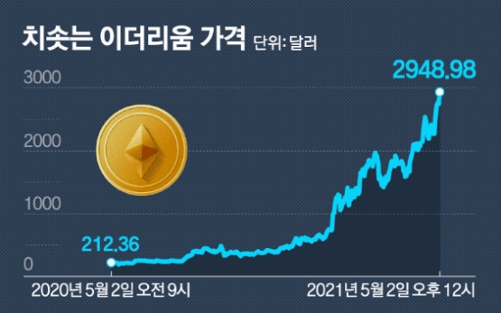 암호화폐 사이트 코인데스크에 따르면 2일 이더리움 가격은 2900달러를 돌파하며 사상최고가를 또 경신했다.
